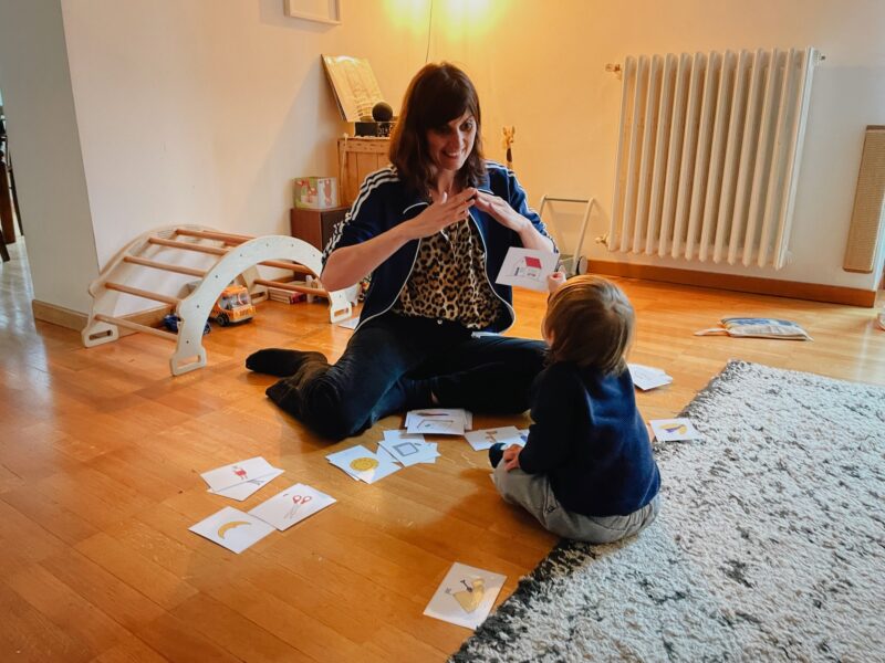 Die zweite Erkenntnis bedeutete für mich eine große Erleichterung: Zweisprachigkeit sei für Kinder mit Down-Syndrom kein Problem, erklärte Wilken. GuK fungiert dabei als Brücke. Das Zeichen für „Hund“ ist immer dasselbe, egal, ob Arturo dabei „Hund“ oder „cane“ hört – und genau dadurch lernt er, die beiden Wörter miteinander zu verbinden. Genau das erlebe ich nun jeden Tag. Arturo benutzt seine Hände immer öfter und bewusster, nachdem wir ihm über lange Zeit mit viel Geduld die Zeichen angeboten haben.